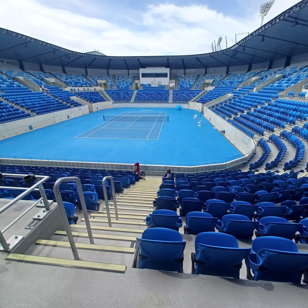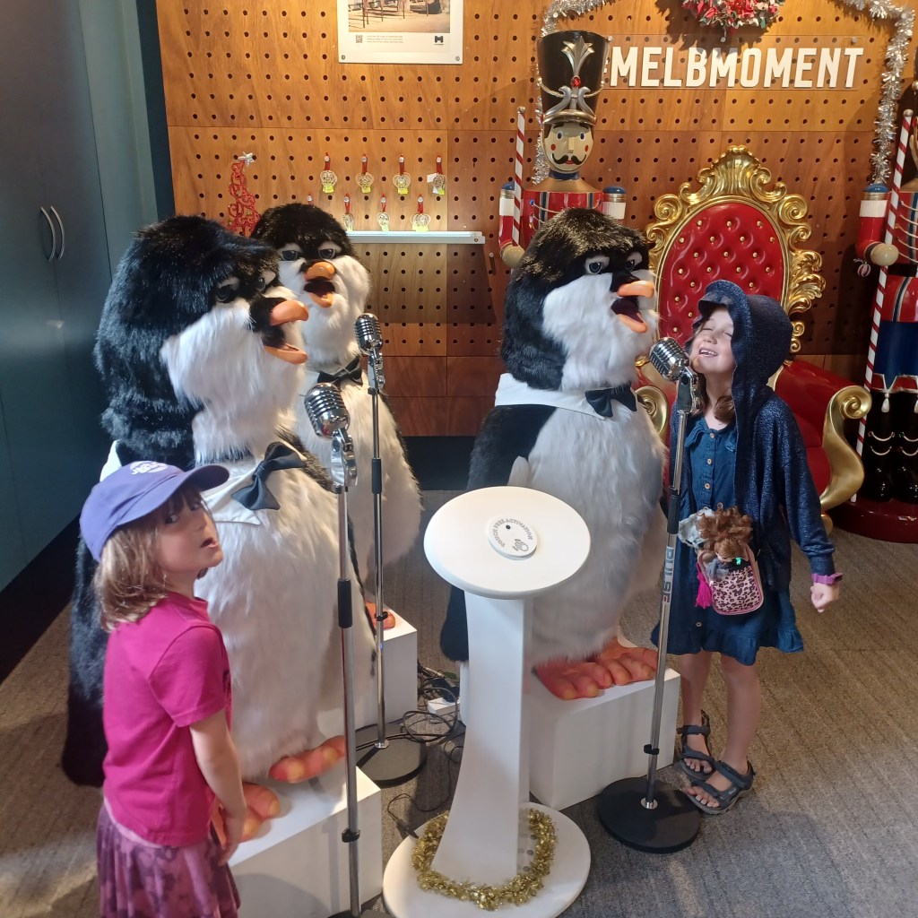 Our first full day in Melbourne was Mike’s day to plan and he planned a long, fun day. It was a Saturday so the streets of Melbourne were hopping. We walked all day long with each of us (including Julie) accumulating over 20,000 steps. Between shopping, visiting the grounds of the Australian Open, watching rowing along the river and visiting a poorly executed Christmas village in the CBD, we also managed to buy Izzie’s running shoes and a new math workbook!