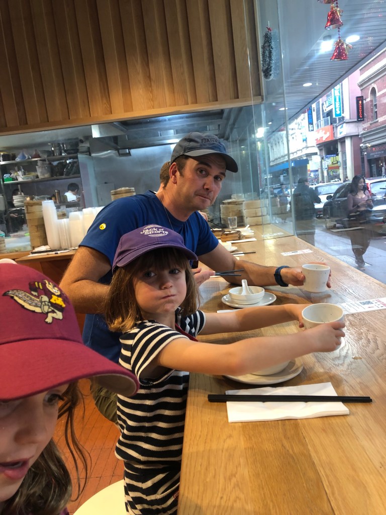 On our final day in Melbourne, I was adamant that we experience more Australian cafe culture. Although, I’ve had my share of flat whites and avocado toasts this month, it was only with my sister-in-law in Hobart that I really got to eat in cafes (Mike does not drink coffee). So off we went to the cafe at the end of the street where I had porridge with flowers in it. Mike had shakshuka while the kids had a croissant since they had already eaten at the Airbnb.  We talked to the owner as he had been to Bali recently and was interested in Canada.  He watched a show called “Rust Valley Restorers” which was a Canadian-made show about old cars and he seemed completely shocked that we’d never heard of it. We spent the rest of the day riding trams and seeing other parts of the city. At this point, our minds had already left Australia and we were more than ready for the plane tomorrow and the new adventures in Bali.