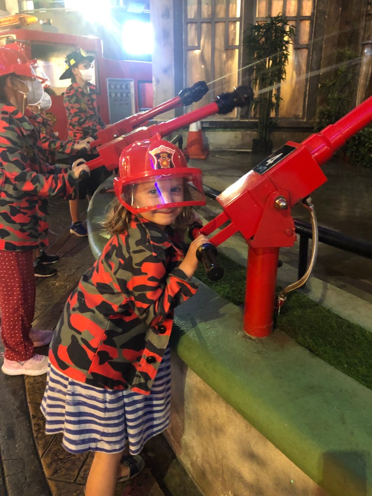 With the less-fun stuff done, we wanted to do something exciting for the kids. We opted to spoil them again (it seems like they were just in Legoland) under the thin veneer of an educational outing. So off we went to KidZania. It’s an attraction where kids spend the day living and working in a fake city. The children try out different jobs, get paid local currency and then go spend said currency. But mostly, they get a snapshot of a wide array of potential careers. Think optometrists, lab technicians, fashion models, burger makers and the ridonkulously popular firefighter. Cousin Liz would be interested to know that to obtain your “driver’s license”, you first need to pay for and pass an eye test in the optometrist’s office. This type of attraction really caters to locals, so our kids doing a magic show in the theatre with a bunch of Malaysian children was quite funny. Julie awed us with the magic cylinder trick. In the future Toronto is scheduled to get a Kidzania.