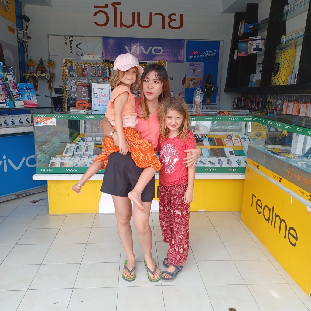 While in the car, we wanted to book our accommodation for the evening, but my Malaysian sim card was no longer working. We asked the driver to pull over, and we tried to purchase one in a small town. We might have been one of the few tourists this shop had seen, but after 10 minutes, we had a functioning phone. The shopkeeper took pictures of our kids, and we were on our way again. Not all parts of Thailand have tourists galore, and the far south is definitely off the beaten path.