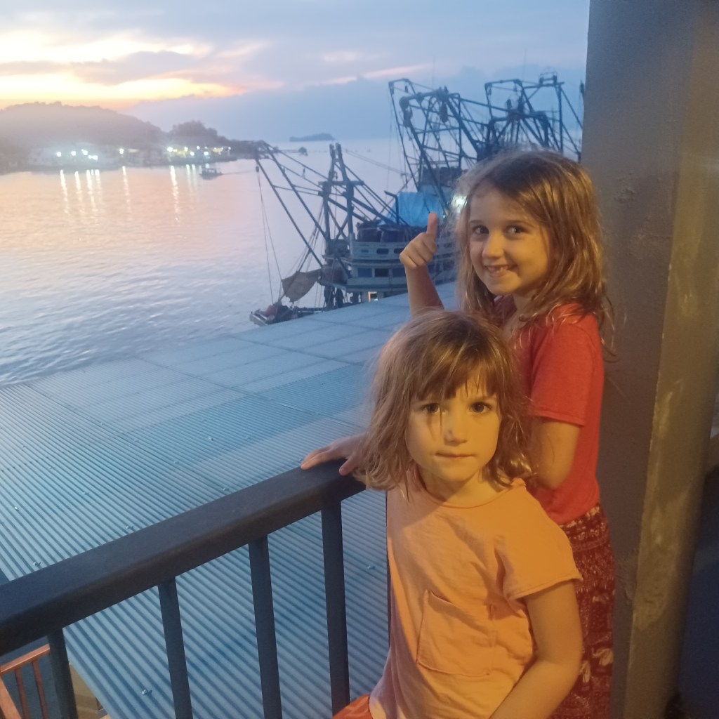 The morning of our departure, we took a Grab (like Uber) to the ferry terminal (1.5km down the road), ate breakfast and bought as many snacks as possible. Clearing Malaysian immigration and customs was a breeze, and we easily boarded our ferry that would drop us off in Satun, Thailand. The boat ride was quick and uneventful (I think we all slept the hour). We queued after disembarking to clear Thai immigration and customs. Within the hour, we were through and the kids got another checkmark on their country list. Full disclosure, the Satun port is very small. Upon entry, we were immediately offered bus and taxi trips to different parts of the mainland. In the end, we paid an exorbitant price to take a private car from Satun to our next ferry terminal destination, just 6 hours down the road!