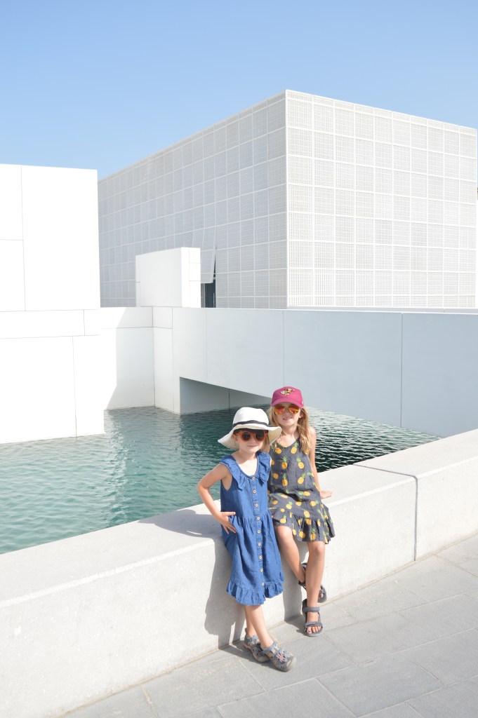 The next day we went to a different and equally visually impressive site, the Louvre Abu Dhabi. Seriously check the pictures online as the images are not photoshopped, the building is that impressive! We probably could have spent the entire time taking pictures of us with the white walls, silver lattice work and turquoise waters. But there was a museum to explore and since we arrived right at the opening, we didn’t have to battle any crowds. There was a children’s section of the museum where we spent most of the time. It was an exhibit on emotions with Julie being Happy with the displays and Isabella Angry at the displays. We walked the adult-oriented collections but were distracted by the Turtle sanctuary on the grounds. Yep, our family’s favourite part of the Louvre Abu Dhabi was the rehabilitation centre for injured sea turtles. They have a “pool” where the turtles live in about 2 ft of water. Naturalists were cleaning and feeding the animals and there was a lifeguard supervising the whole thing. But seriously, the water didn’t go above the naturalist’s waist! And how many museums have a lifeguard?