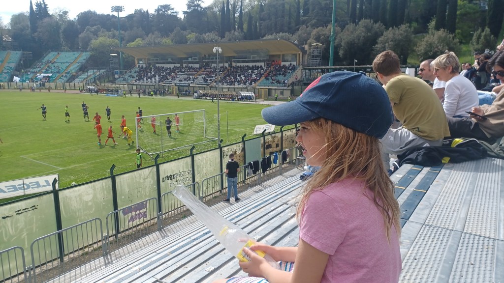 Siena has some beautiful sites like a Duomo Cathedral and a tower well worth climbing. The outskirts of the city were pure Tuscan magic and we hiked one day amongst the olive and cypress trees. We also attended a soccer game since the Stadium was less than 100m from our apartment. Julie and I lasted until halftime but Isabella stayed for the whole game with her dad.