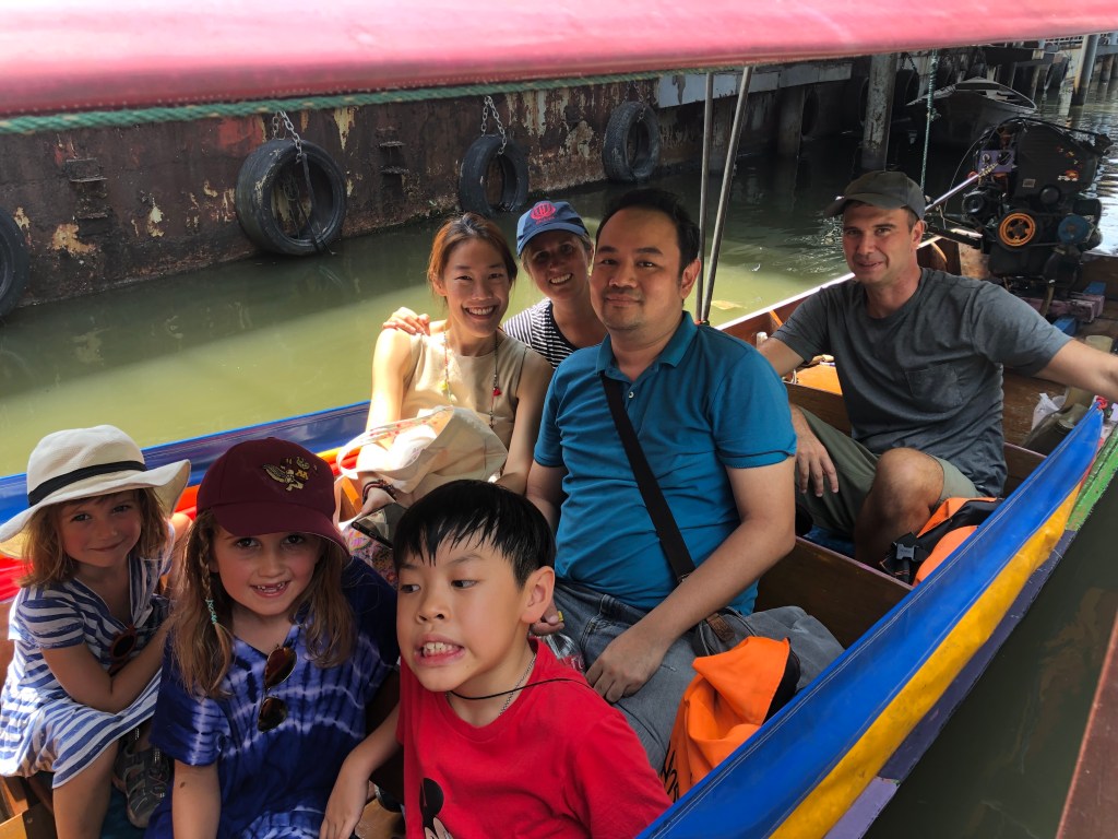 Another great part of Bangkok was getting to see my friend Chanisa again. Flashback to 15 years ago, my master’s degree program was a tiny class with only 25 close-knit students. Many of us now live in other parts of the world, and catching up is always fun. Chanisa planned an excellent day where we took a boat to a floating market with her family. We got to try some Thai foods that we would have never tried and the kids got to play with another kid which was great. A highlight was spotting water monitors in the river while we meandered through the canals. It is always nice to meet friends along our journey.